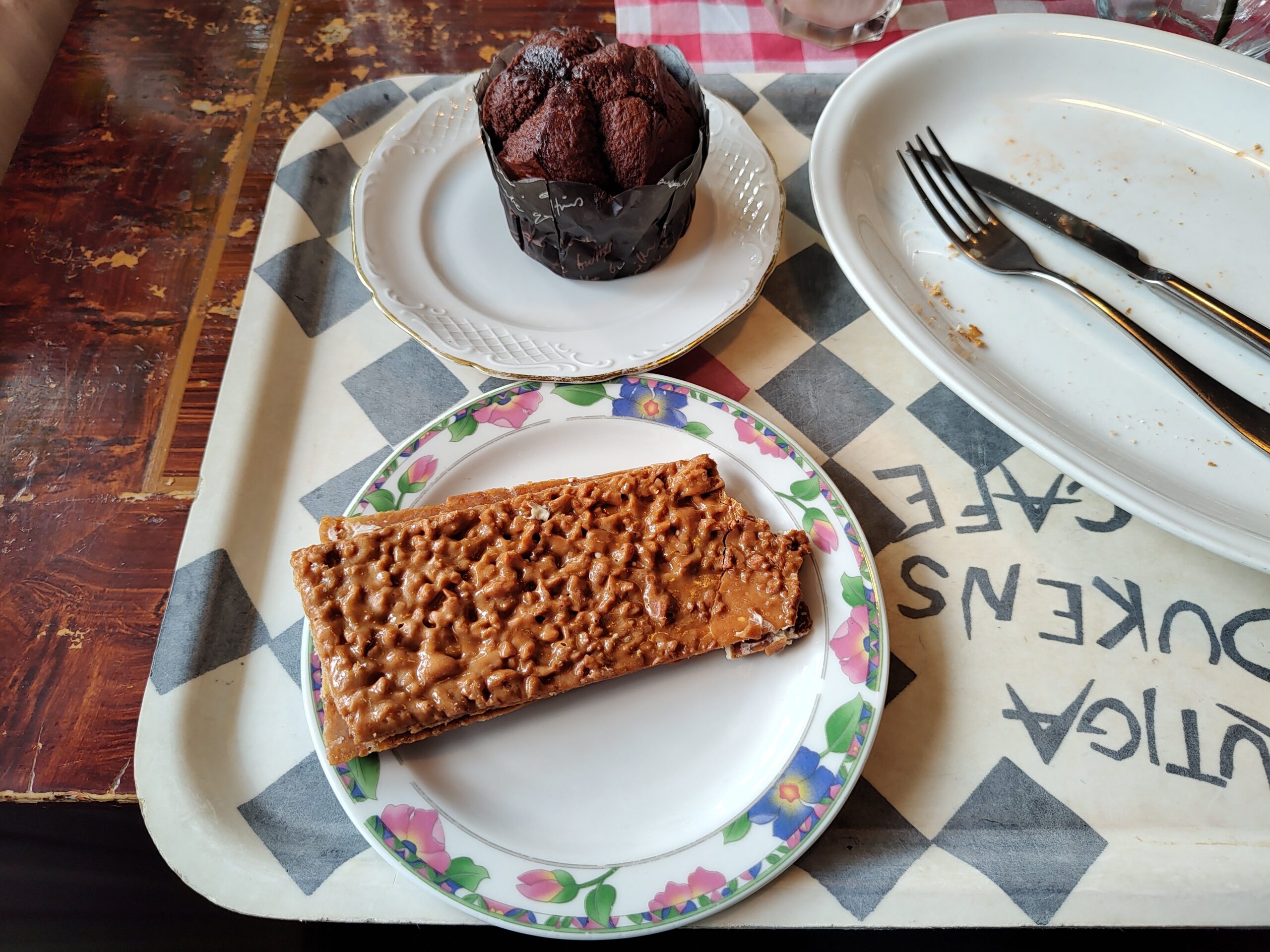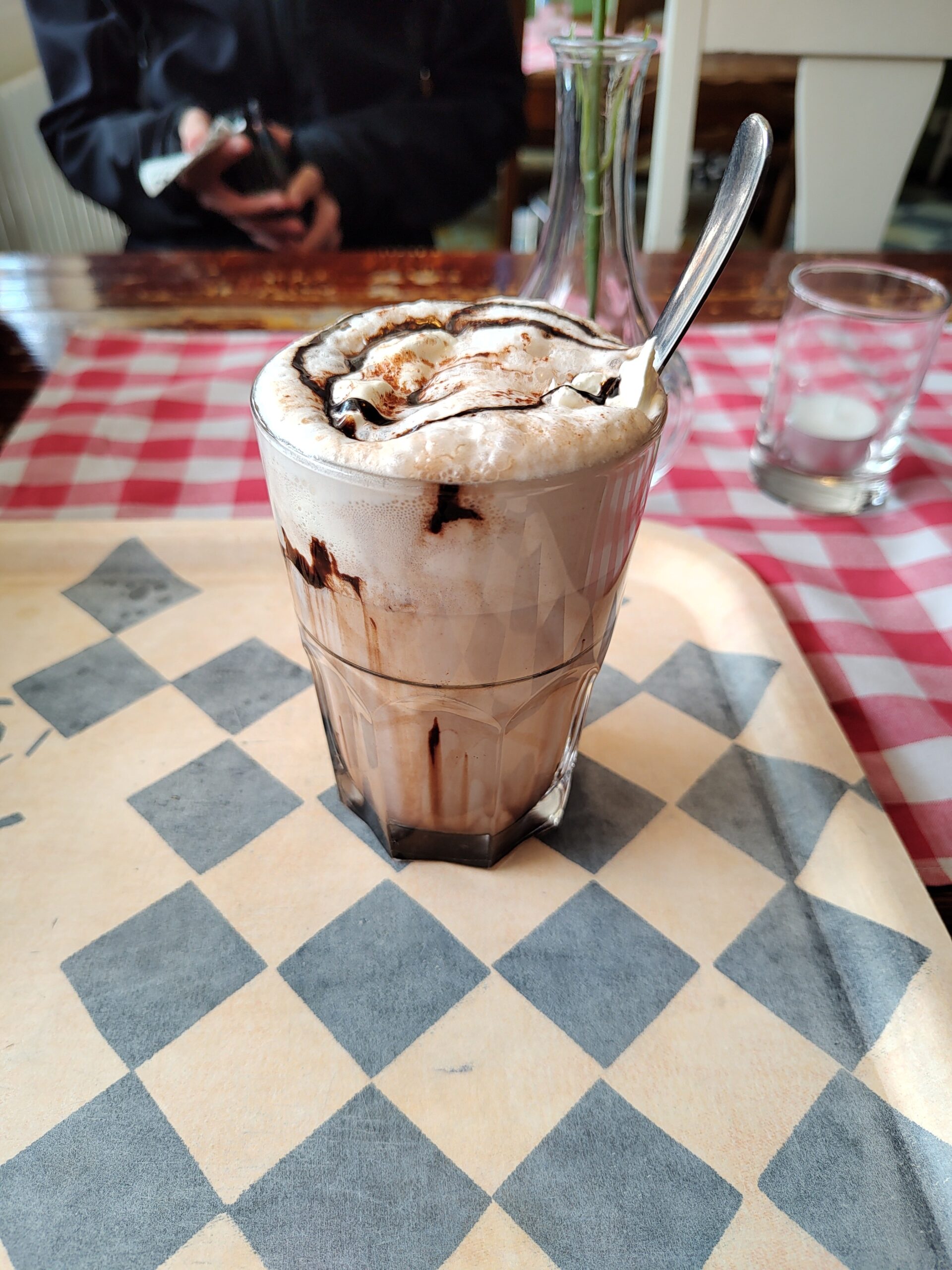 Wir sind in ein Kaffee, wie gestern auch. Haben beide eine Heiße Schokolade getrunken, etwas „Gescheites“ gegessen und einen Nachtisch dazu.