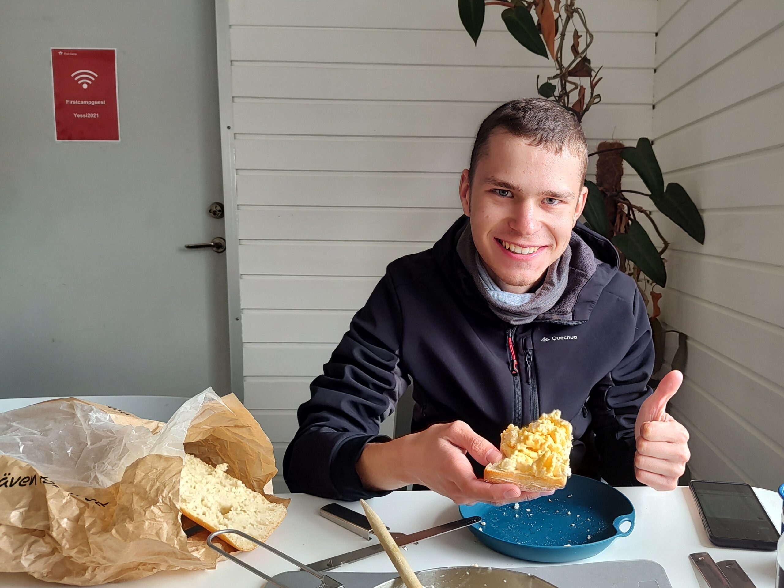 Unser „Frühstück“ fand dann etwas verspätet, um 13 Uhr statt. Heute haben wir es tatsächlich geschafft, einmal ordentlich zu frühstücken, wie wir es von daheim gewohnt sind (oder so ähnlich).