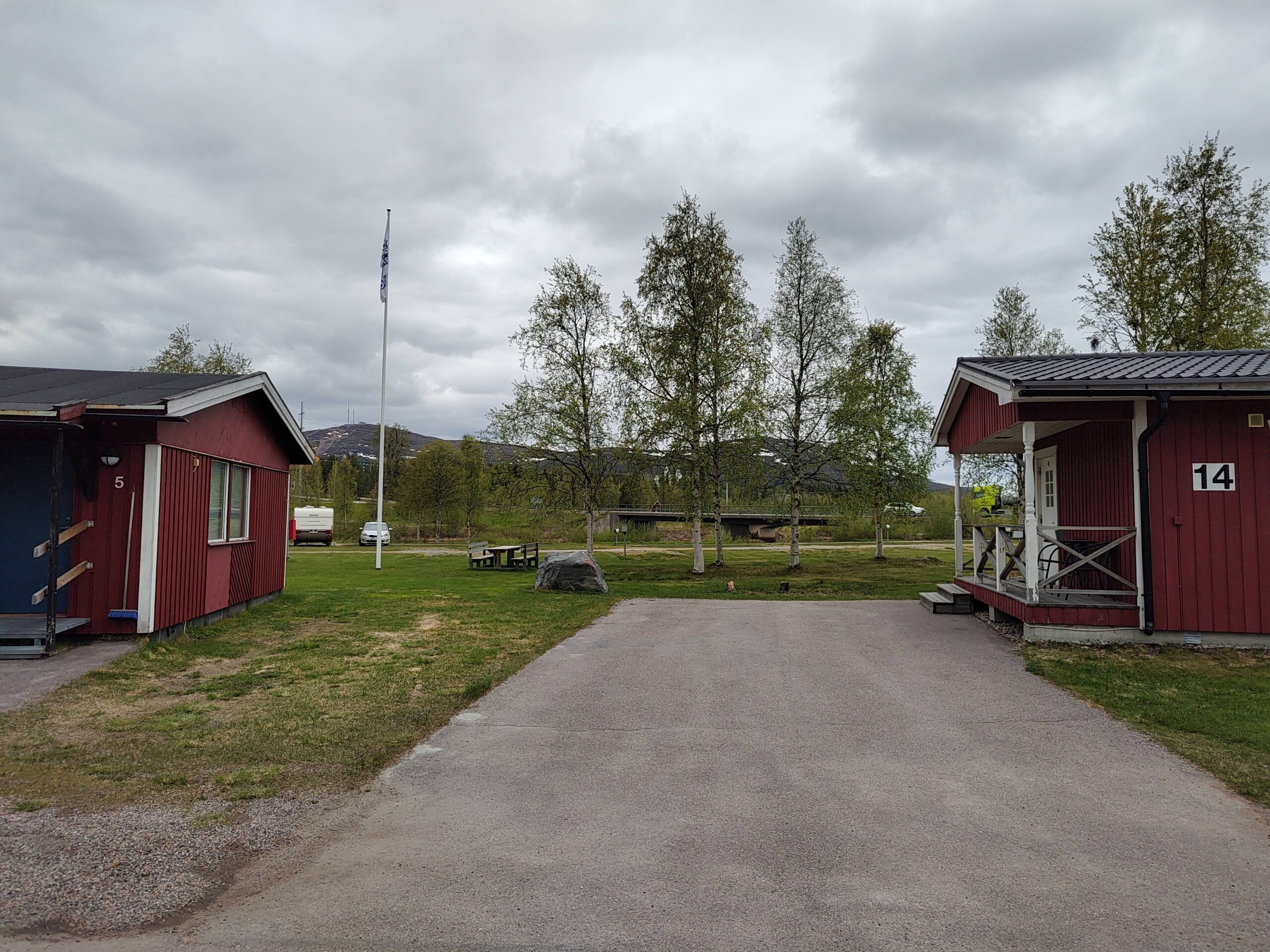 Wir waren vorbereitet, hatten online geschaut und bis zu einer Jugendherberge geplant. Vor Ort stellte sich heraus: Diese Herberge gibt es nicht. Es steht nur ein Schild, mit einer Telefonnummer, dort hört man eine schwedische Mailboxansage. Die Leute vor Ort meinten das Haus sei nur für Minenarbeiter.