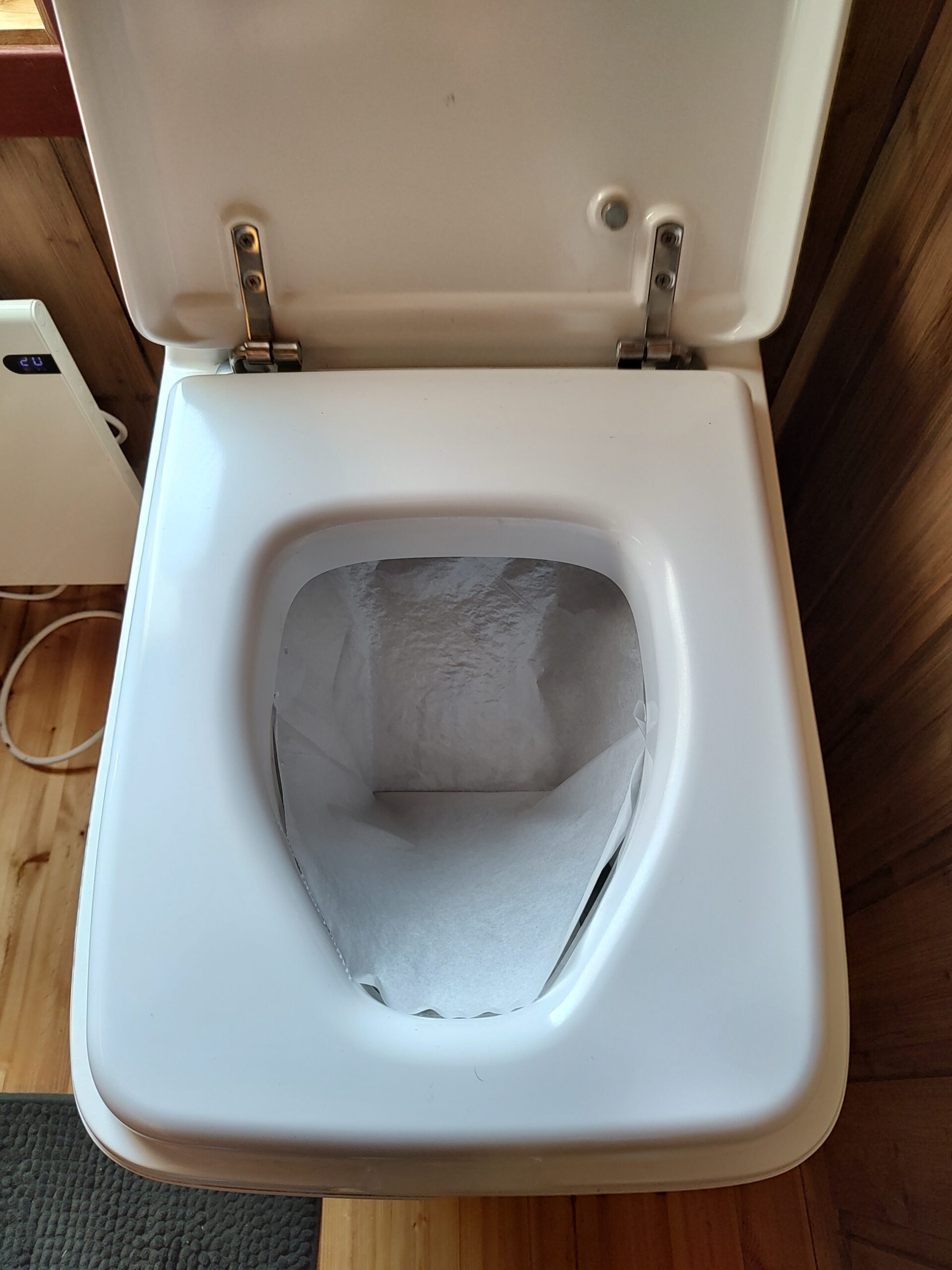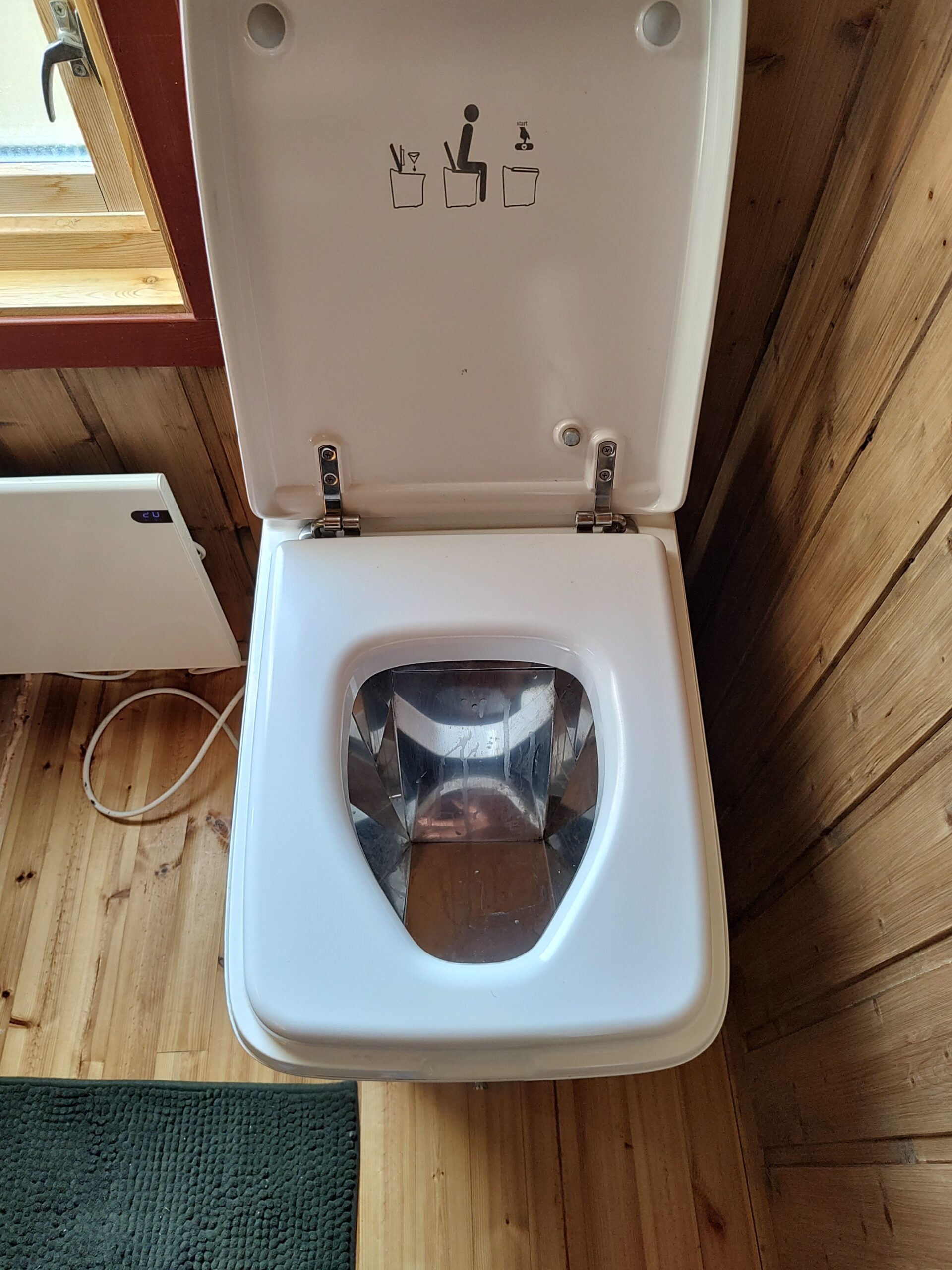 Kein fließendes Wasser heißt aber auch, keine Toilette. Zumindest keine herkömmliche, es gibt eine sogenannte „Cinderella-Toilette“.